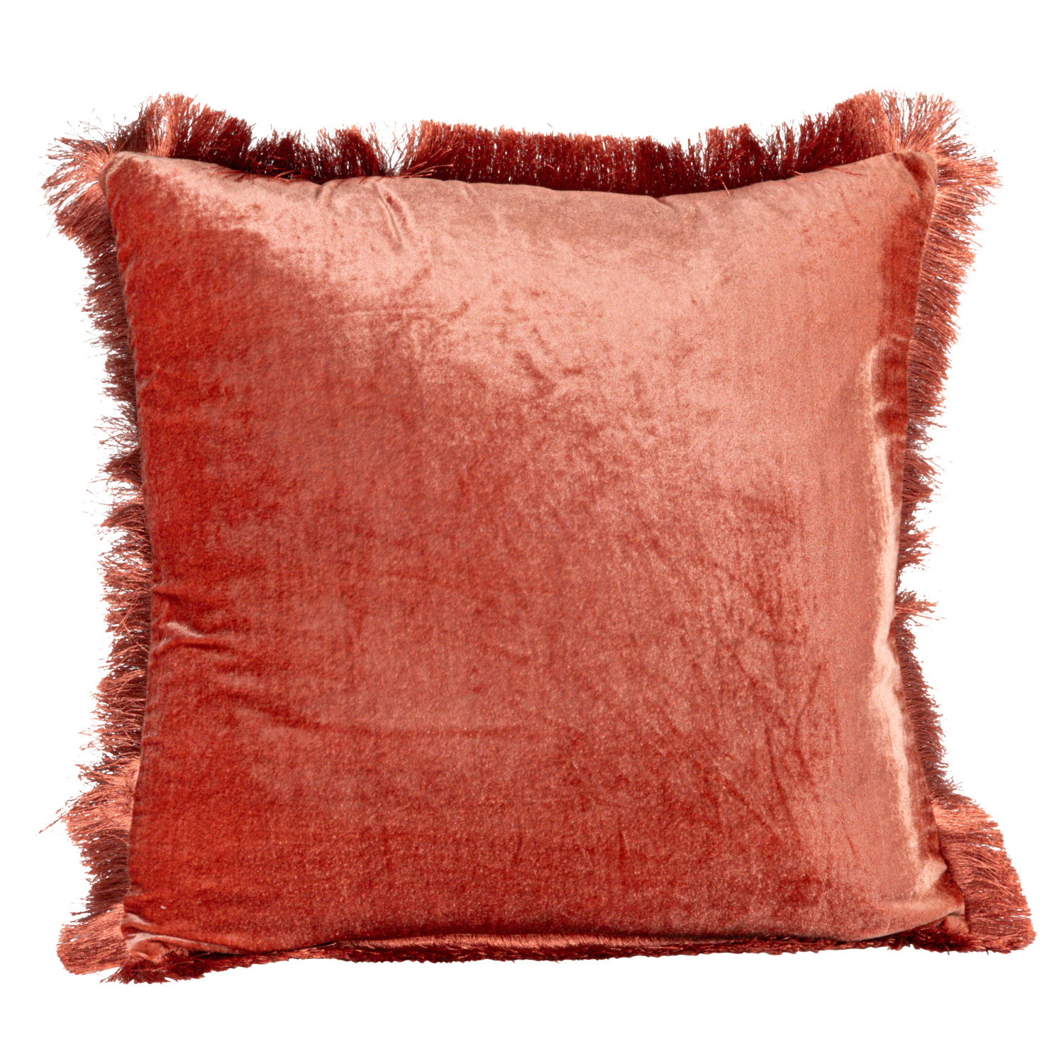 Catalog Name: 20" Square Velvet Pillow w/ Eyelash Fringe, Clay Color