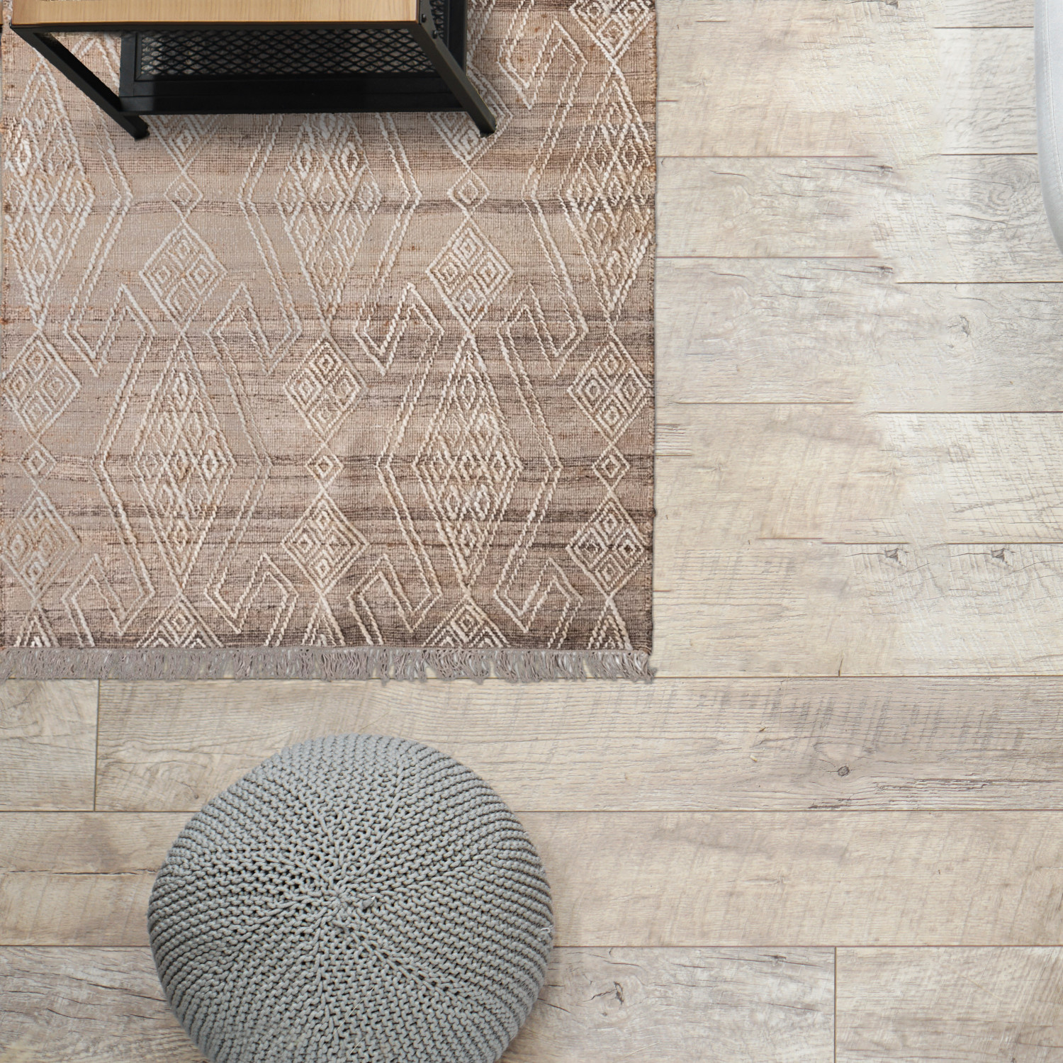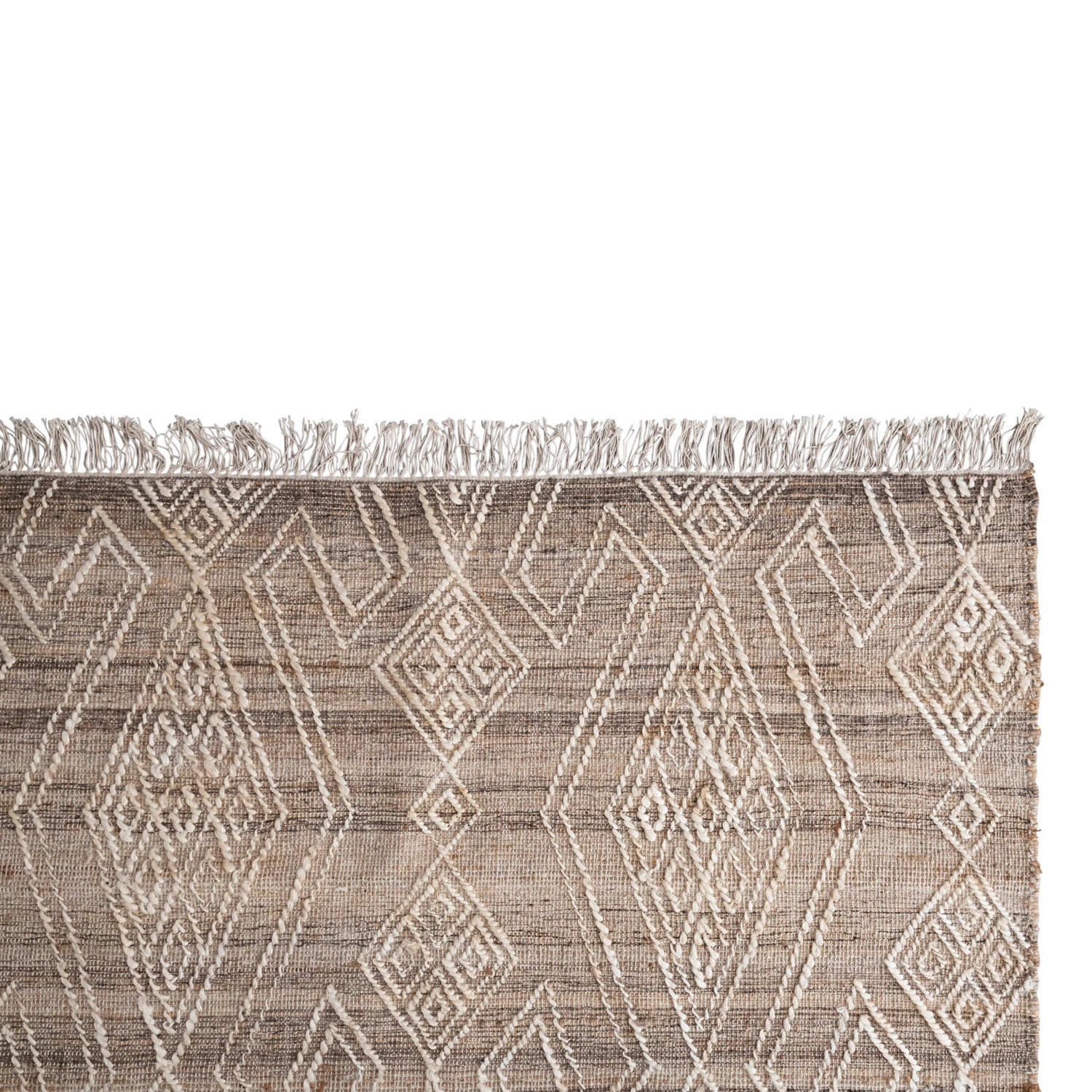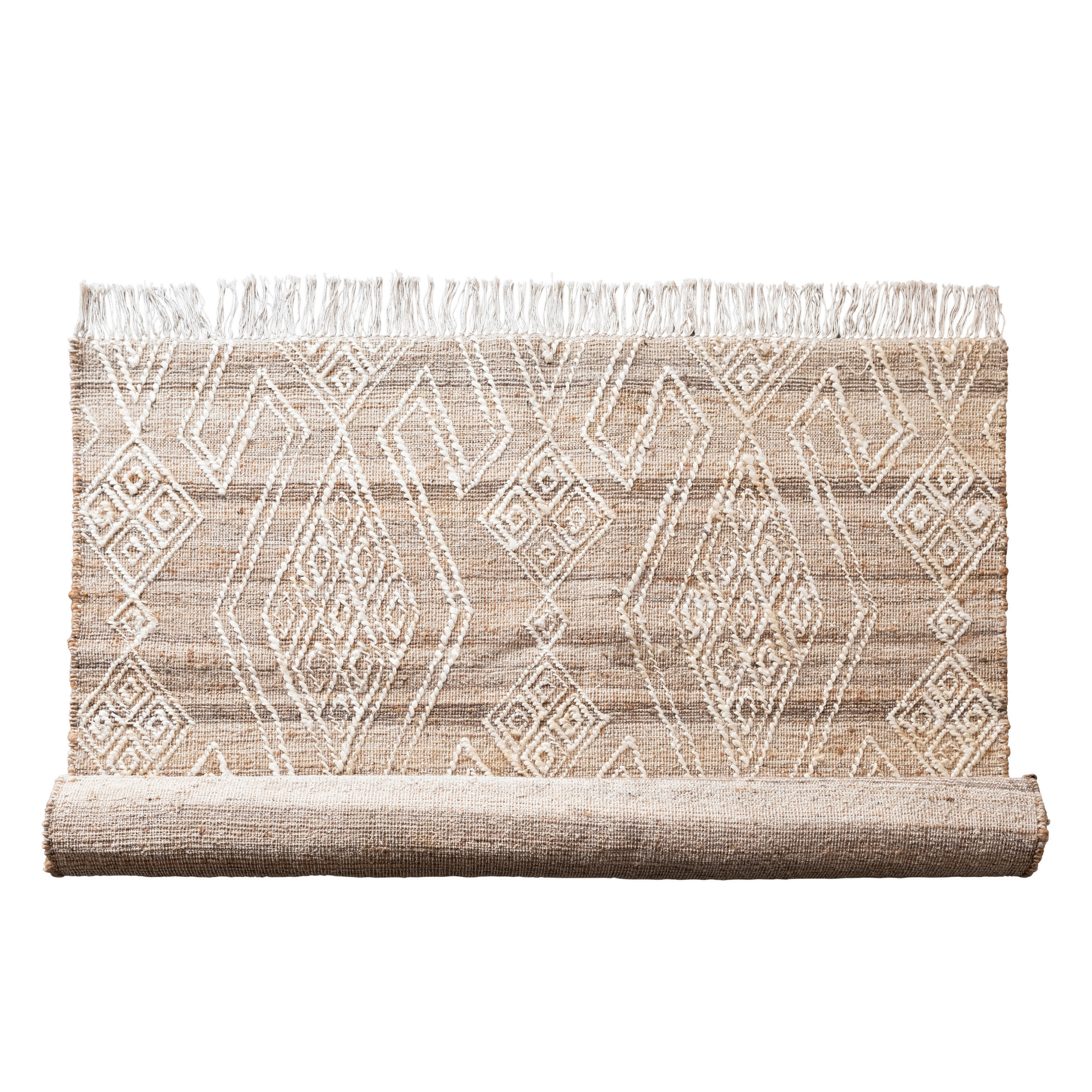 Hand-Woven Jute and Wool Blend Rug with Pattern and Fringe