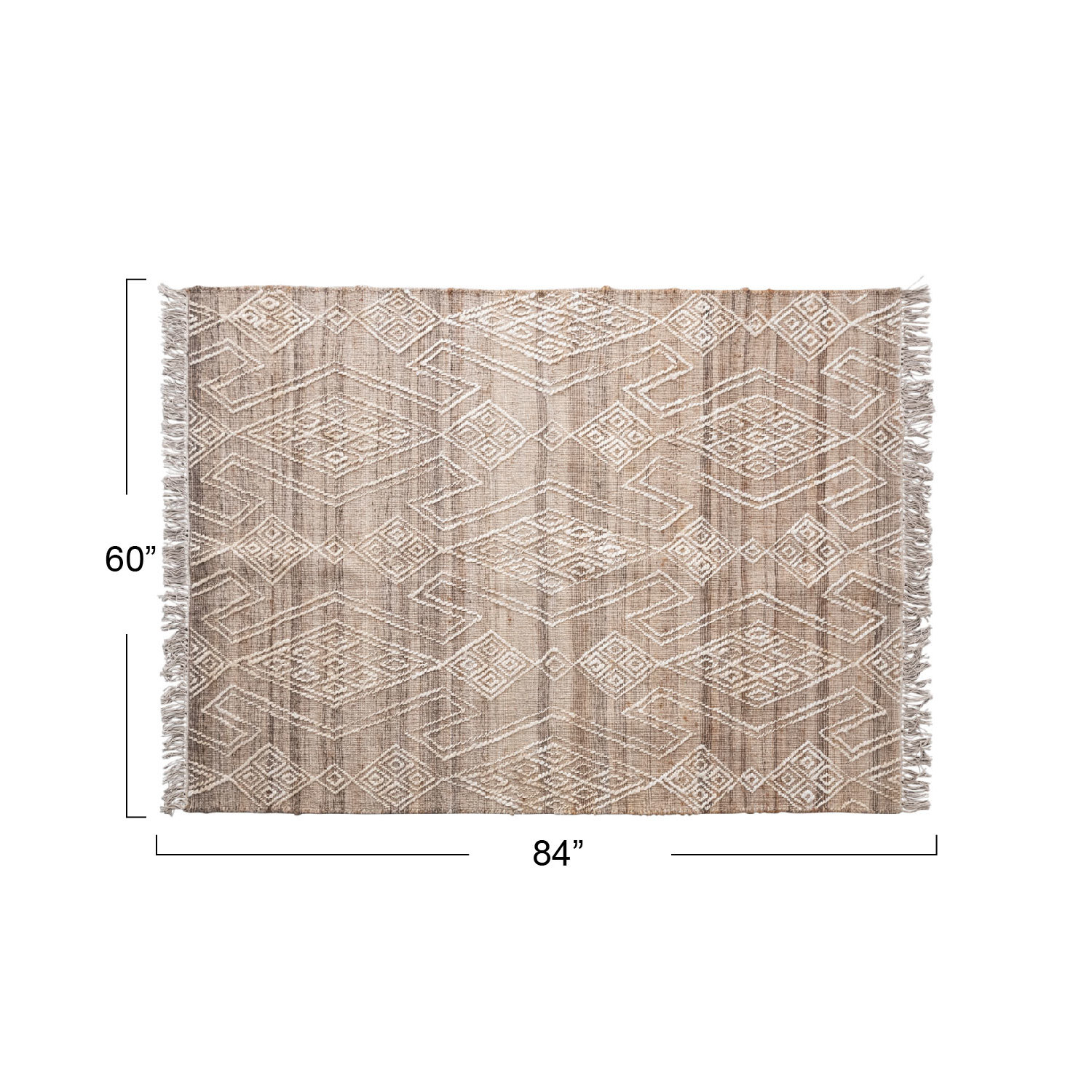 Catalog Name: 5' x 7' Hand-Woven Jute & Wool Blend Rug w/ Pattern & Fringe, Beige & Cream Color