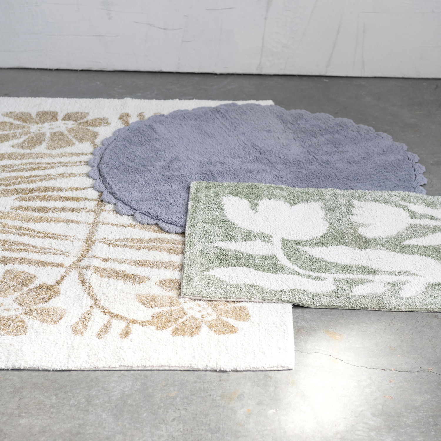Catalog Name: 2' x 3' Cotton Tufted Rug w/ Flowers, Sage Color & White