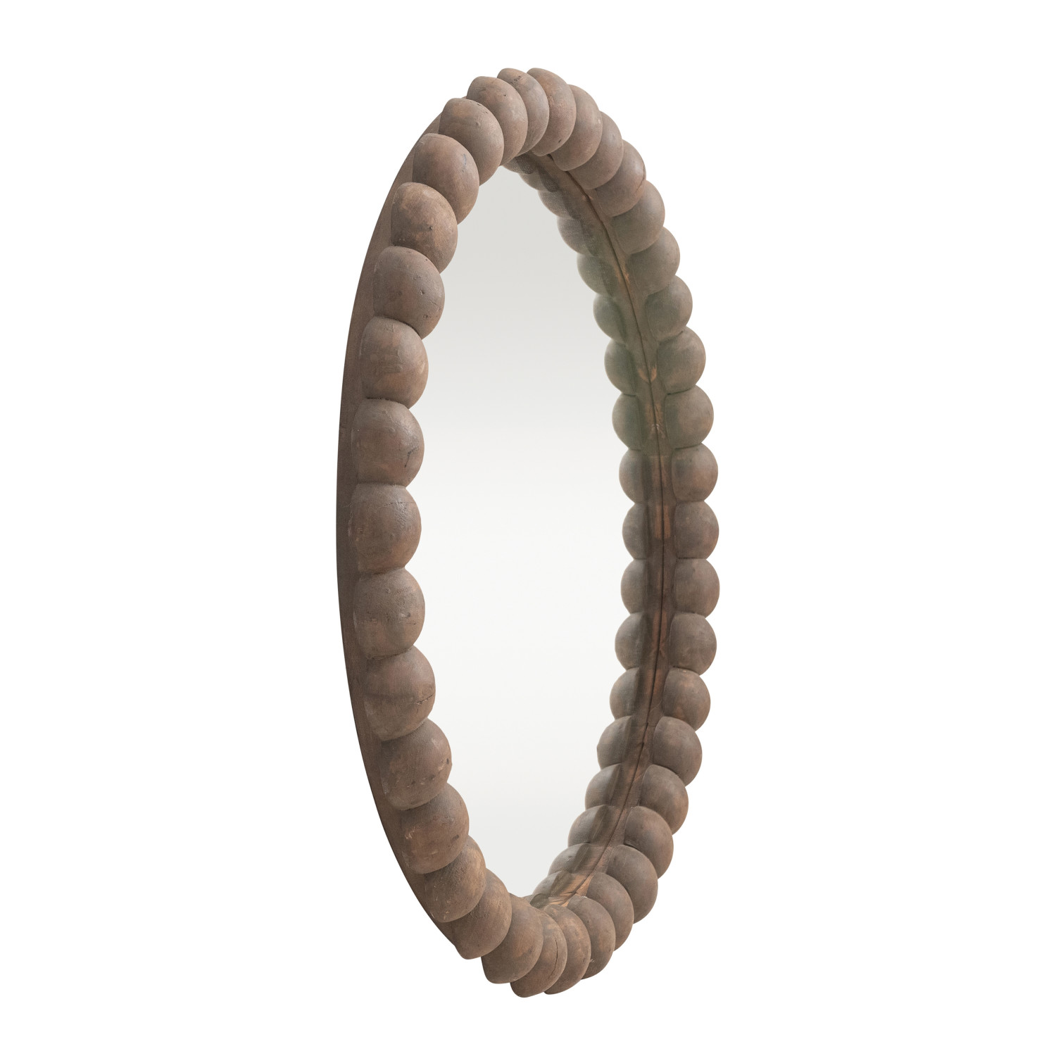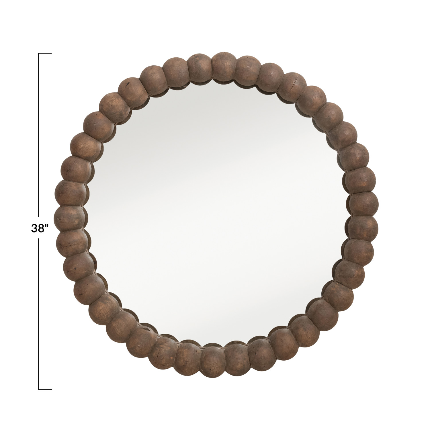 Approximately 38" Round Reclaimed Wood Bobbin Framed Wall Mirror, Natural