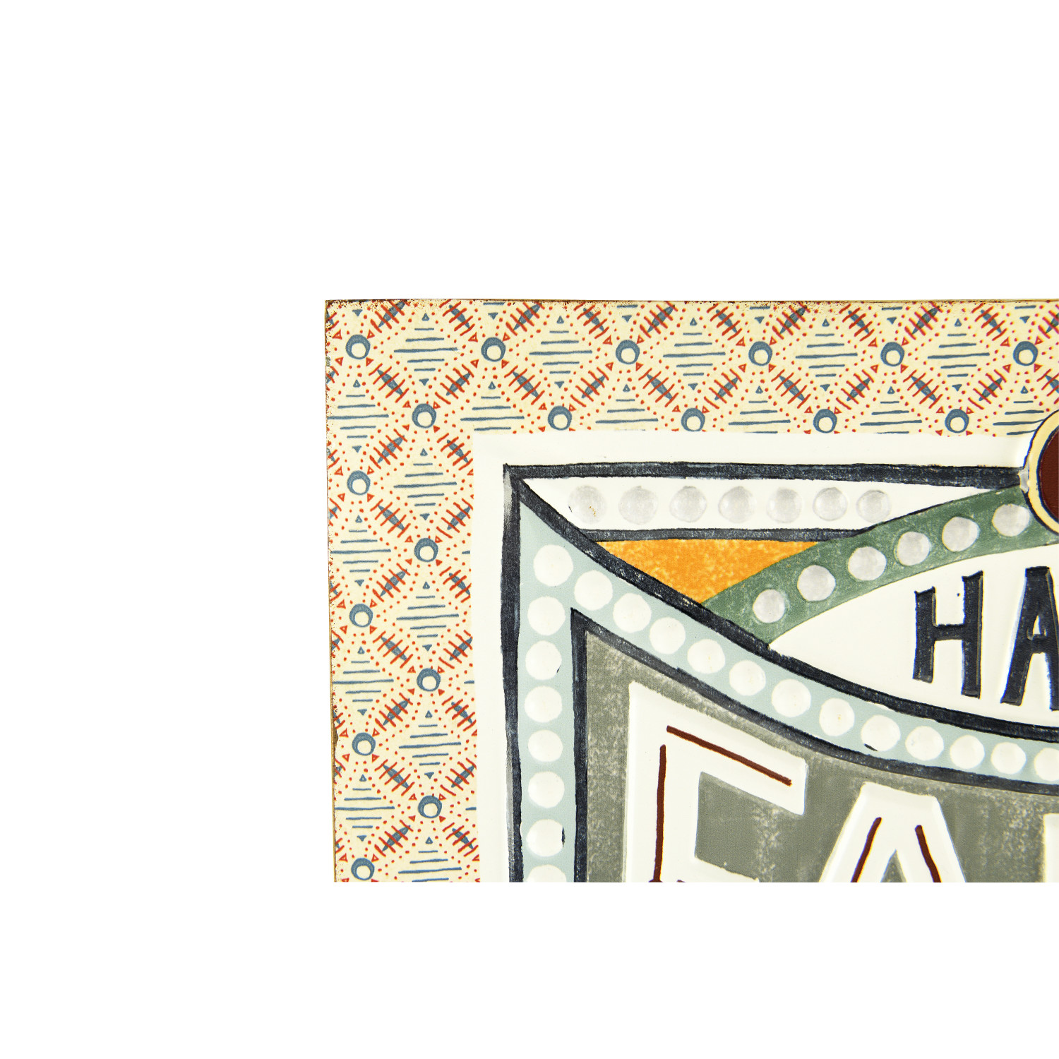 Catalog Name: 18-1/4"W x 14-1/2"H Embossed Enameled Metal Wall Décor "One Happy Family Are We!" ©