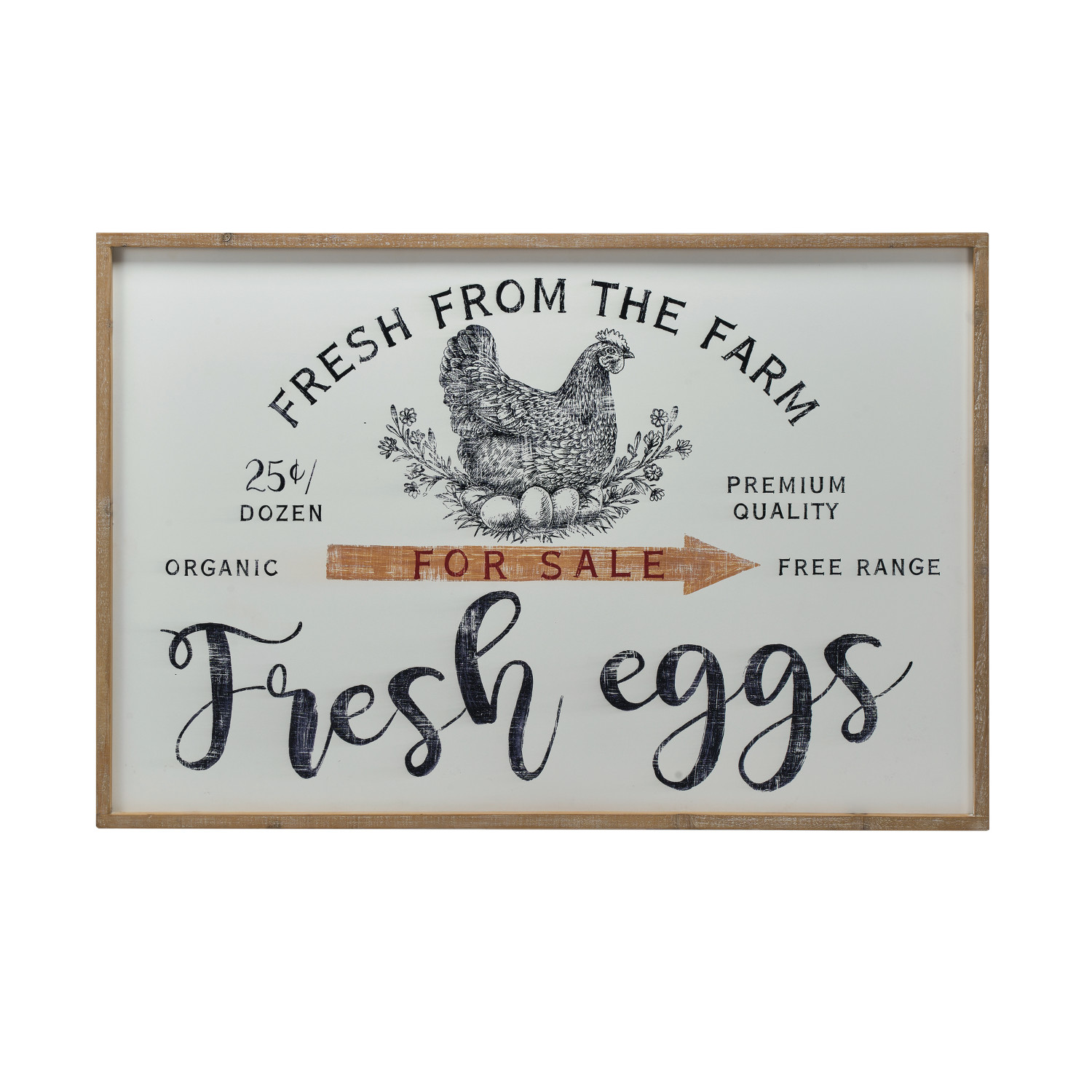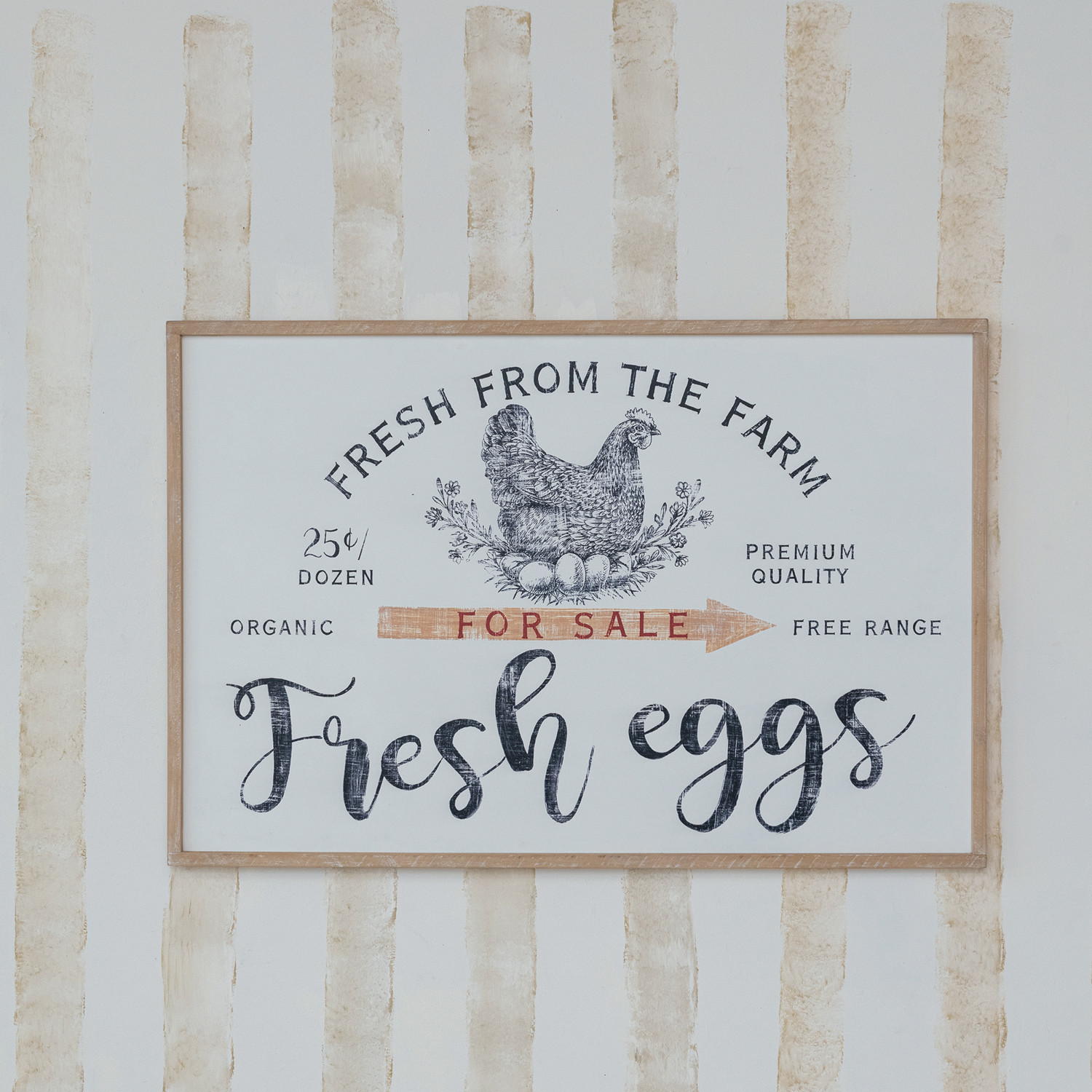 This "Fresh From The Farm" wall decor is a testament to classic farmhouse aesthetics, crafted with care from pine wood. The piece's generous dimensions and the inviting text evoke a sense of nostalgia and connection to rural life. Its rectangular frame and the multi-tonal wood grains provide a perfect canvas for the charming message, making it a delightful addition to any room that celebrates the simplicity and allure of the farmhouse or French country design. It measures 48 inches in length by 32 inches in height, making a substantial statement on any wall. Additionally, the distressed finish adds a touch of vintage charm to the piece.