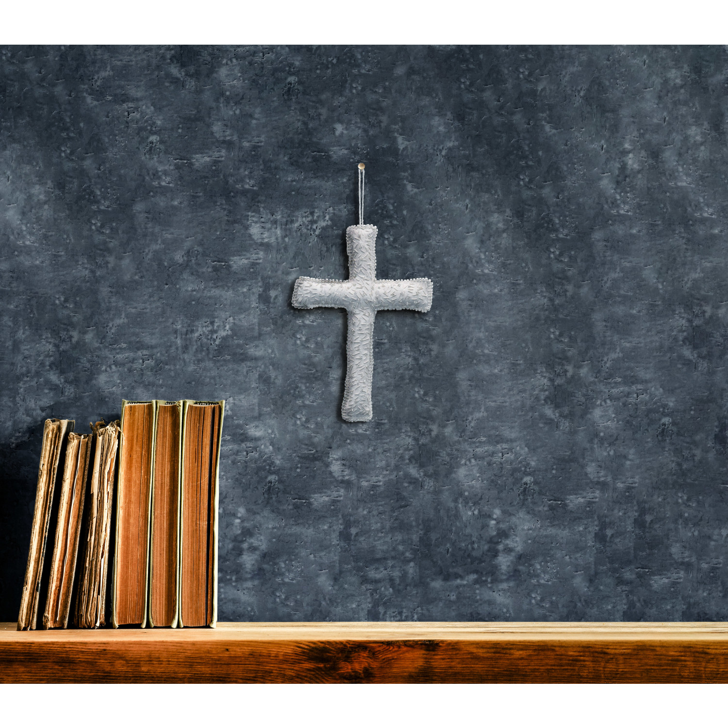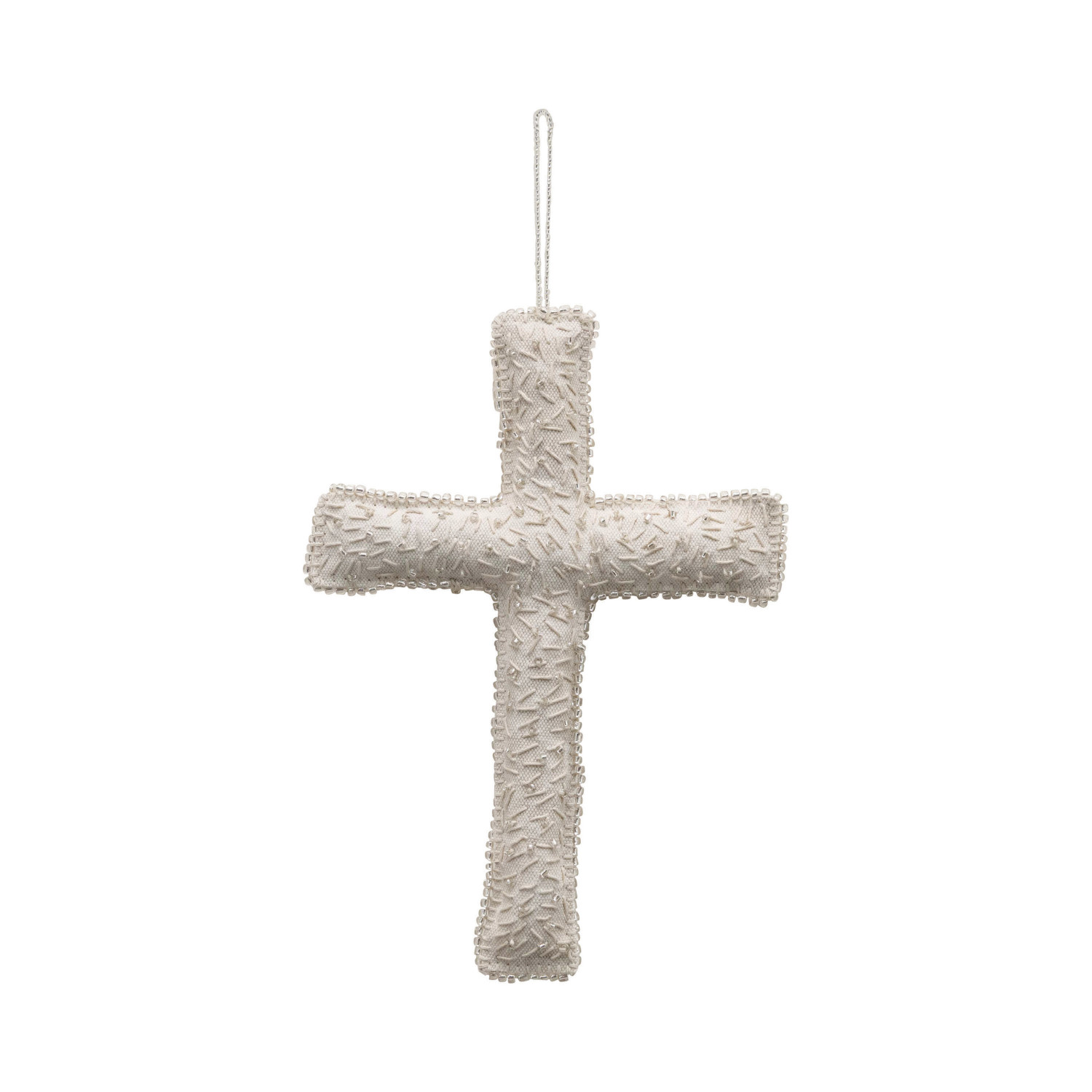 This inspirational and artistically crafted, handmade recycled cream fabric cross has intricate glass bead details. The beautifully detailed craftsmanship makes this cross a wonderful accent for any room in the home or office. Hang with a grouping of art and photos, or from a favorite piece of furniture or lamp for that special touch.